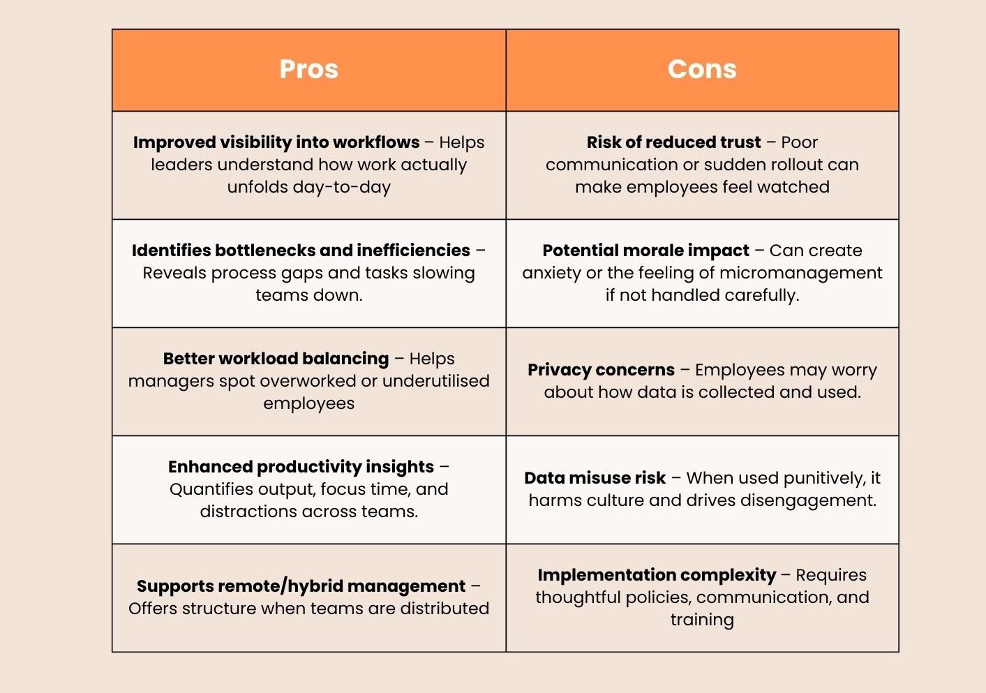Not as a sign of distrust, but as a practical attempt to understand where time is being spent and what that effort is yielding. This is where the pros and cons of employee monitoring can keep you stuck in the same loop over and over again.