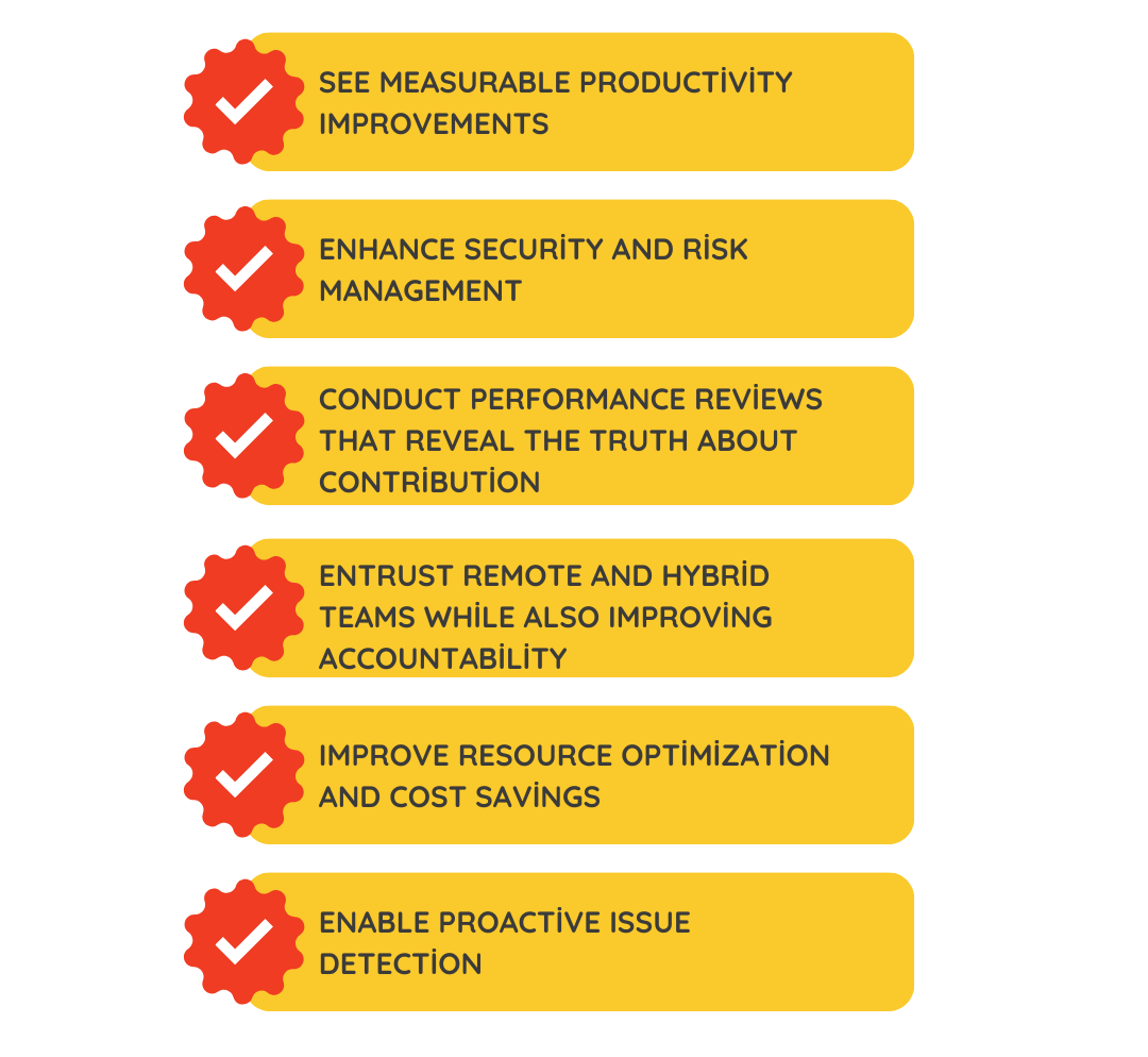 Developmental, transparent, real-time employee monitoring gives leaders visibility into what the naked eye can’t detect: how time is actually spent, where workflow friction accumulates, and which operational patterns consistently undermine performance.