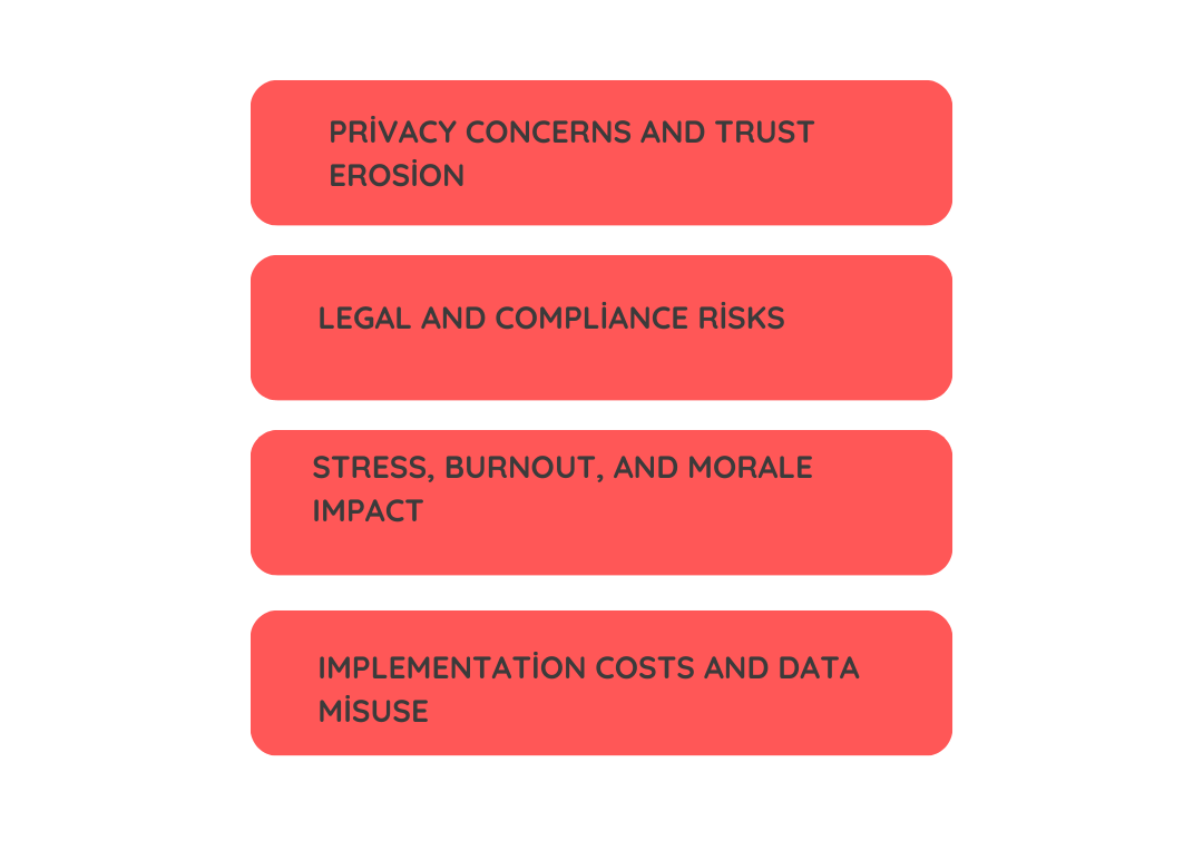 Employee monitoring can lead to privacy concerns and reduced trust if done without transparency. It may also cause stress or resentment among employees, affecting morale and engagement.