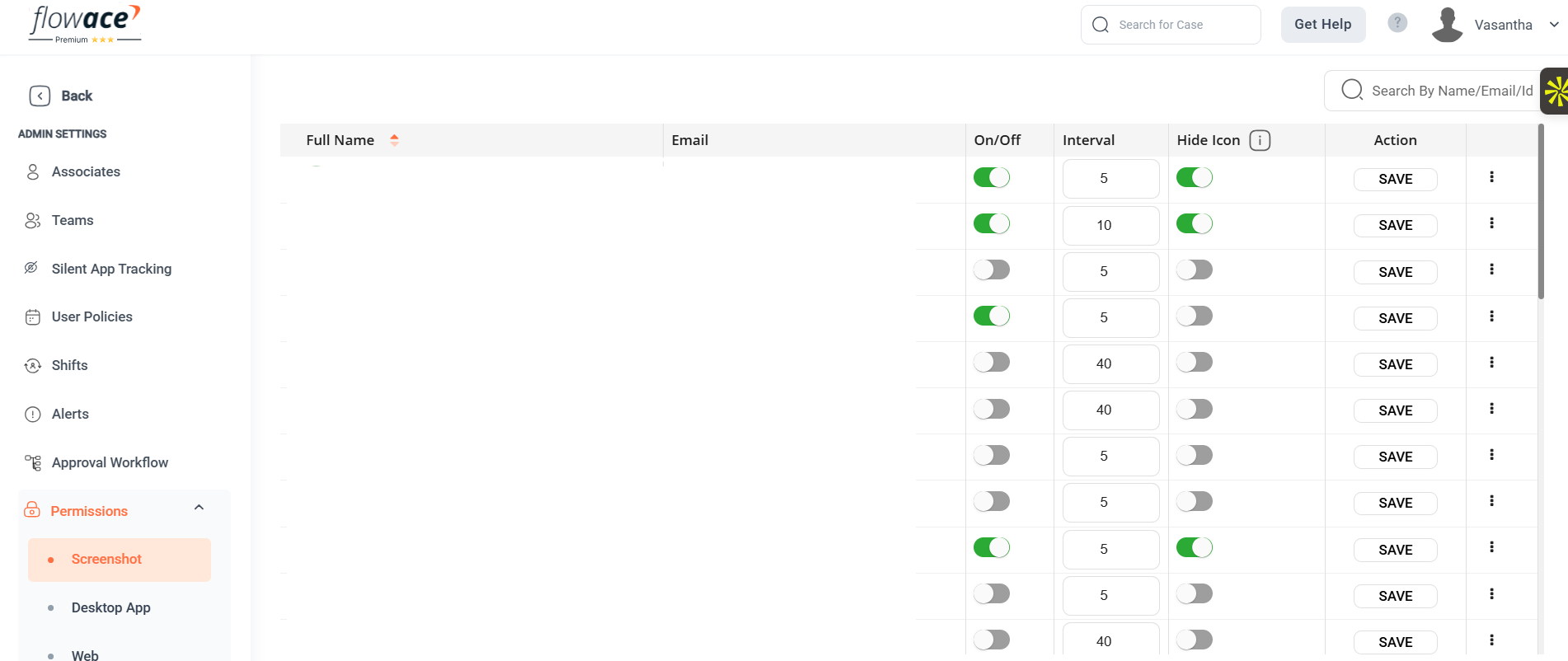 Flowace offers granular screenshot settings, including on/off toggles per user, adjustable intervals (e.g., every 5-10 minutes), and options to hide or show the tracking icon for awareness. Privacy Mode and BYOD safeguards limit monitoring to work-related activities during business hours, excluding personal apps and off-hours data. Screenshots auto-delete after 30 days to minimize data retention risks.