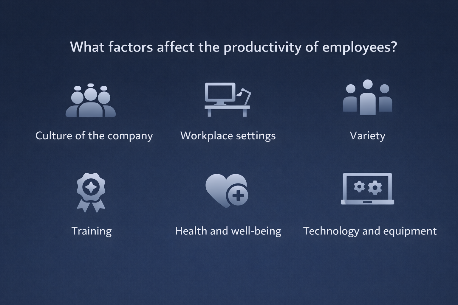 Elements such as culture, environment, training, and technology greatly influence employee productivity and, consequently, company outcomes.