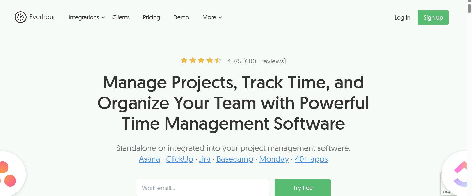 | Everhour | Creative agencies and project-based teams using tools like Asana, Trello, or ClickUp for integrated time tracking. | Embedded tracking, budgets, invoicing, task sync. | Requires browser extension, 5-user minimum. | Free (limited), then $8.50/user/month | ★★★★☆ |