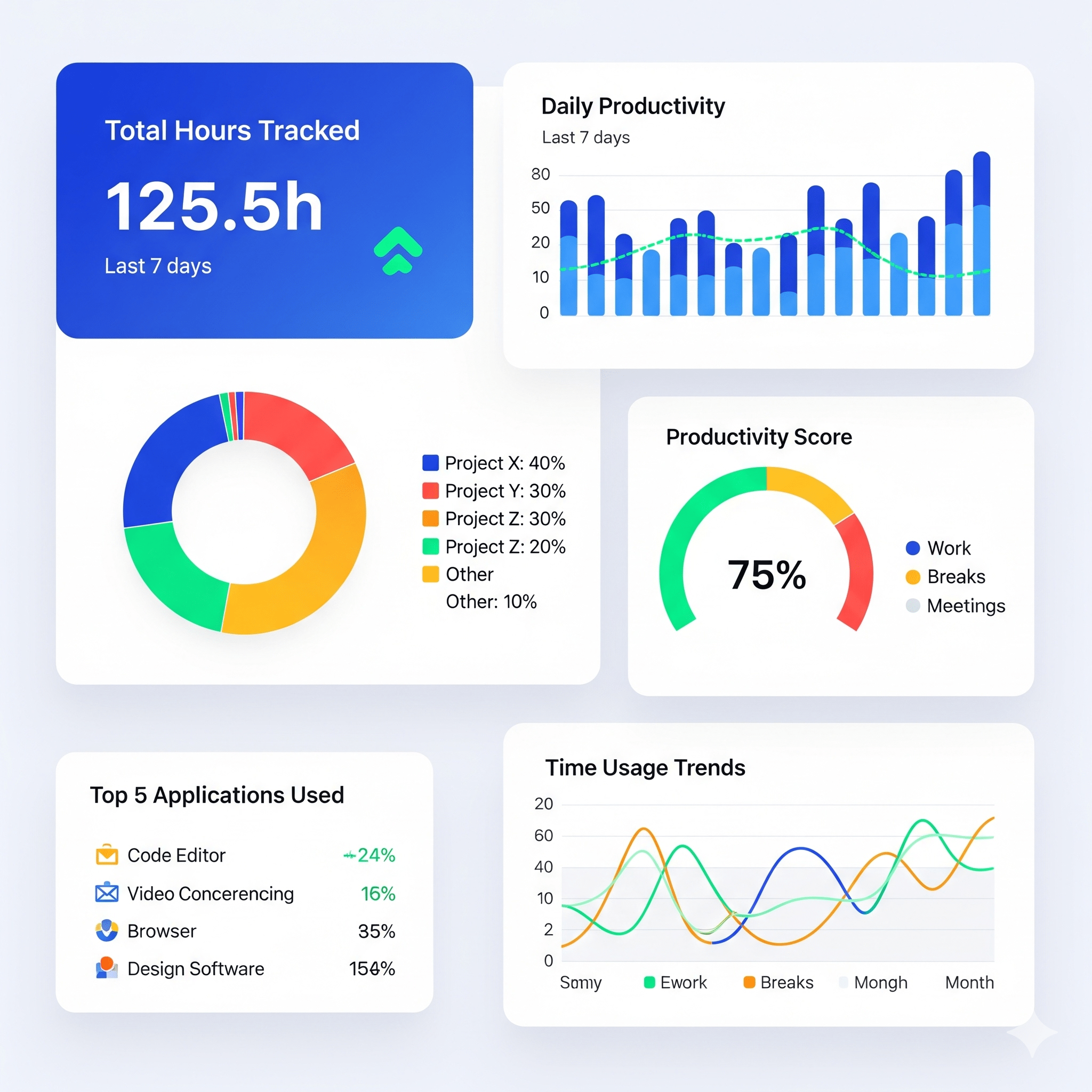 - AI-Powered Insights: Smart analytics identify productivity trends, predict burnout, and highlight optimization opportunities, making performance data actionable.