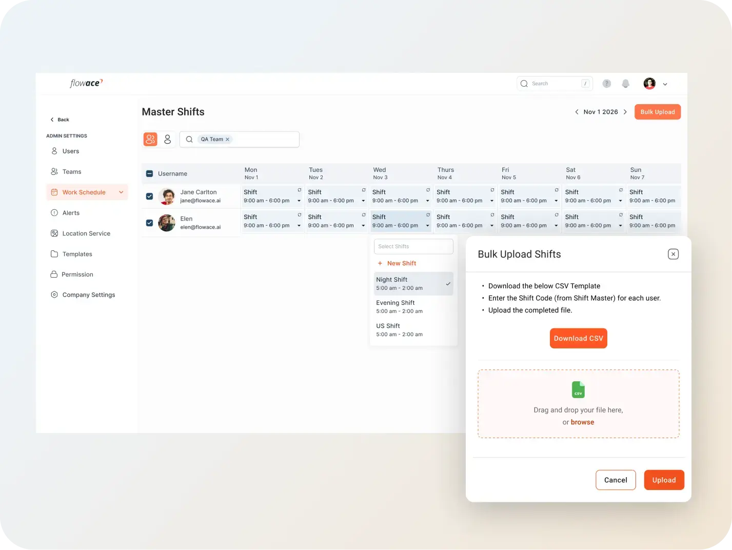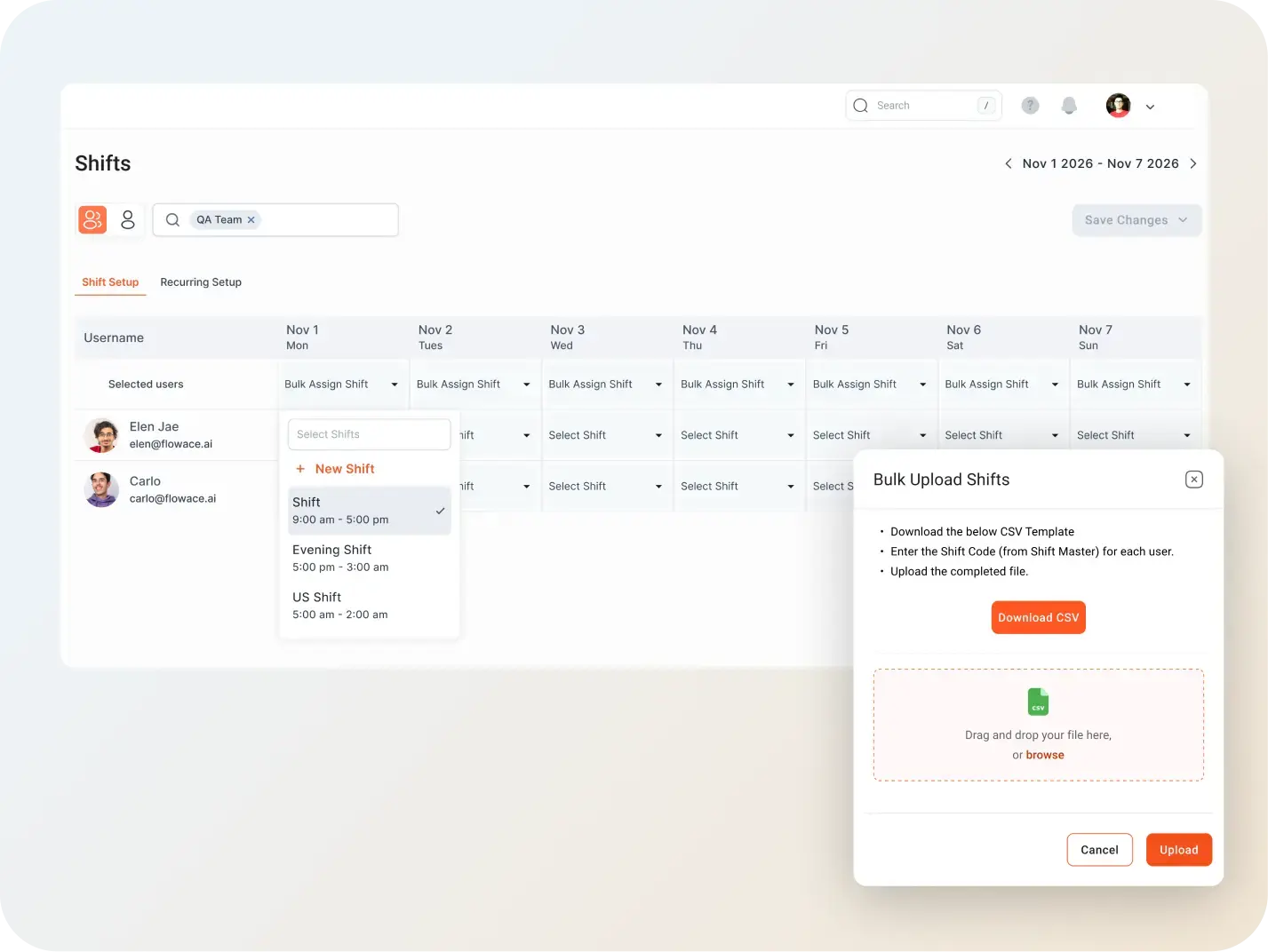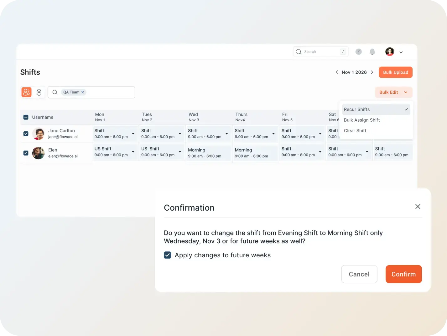 From conflict-free planning to real-time flexibility, Flowace brings everything you need to manage shifts, track time, and keep teams aligned.